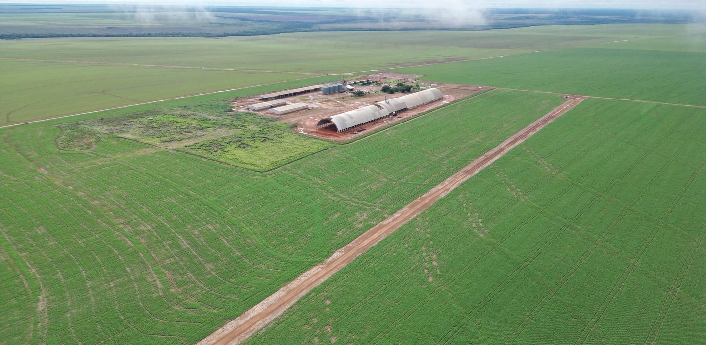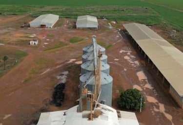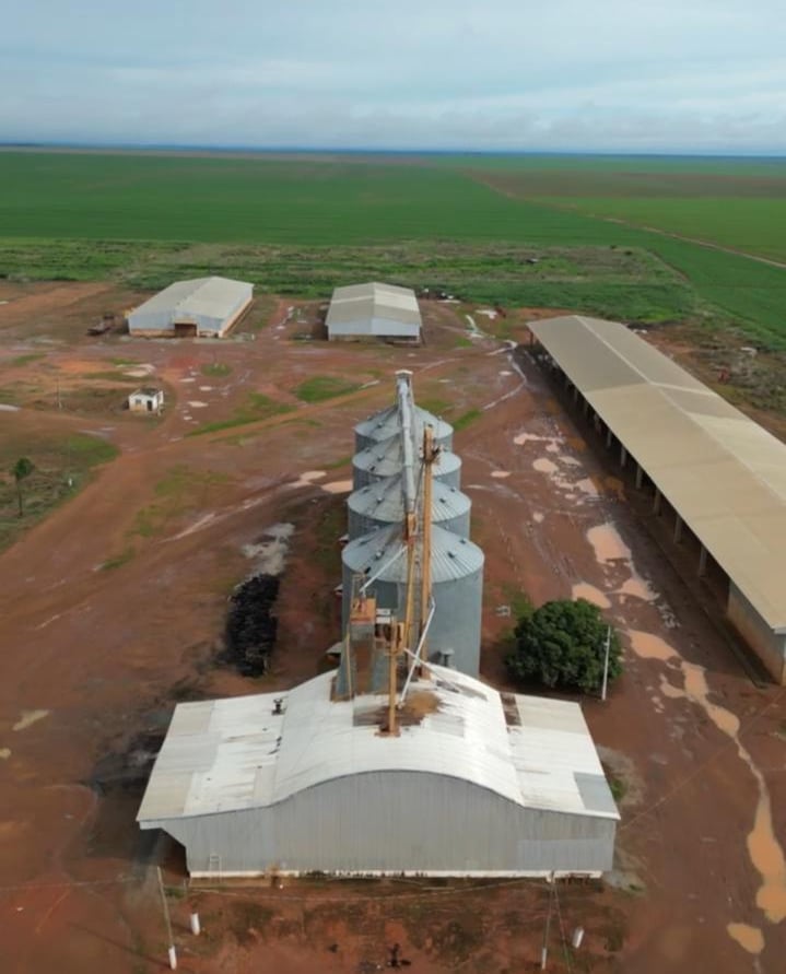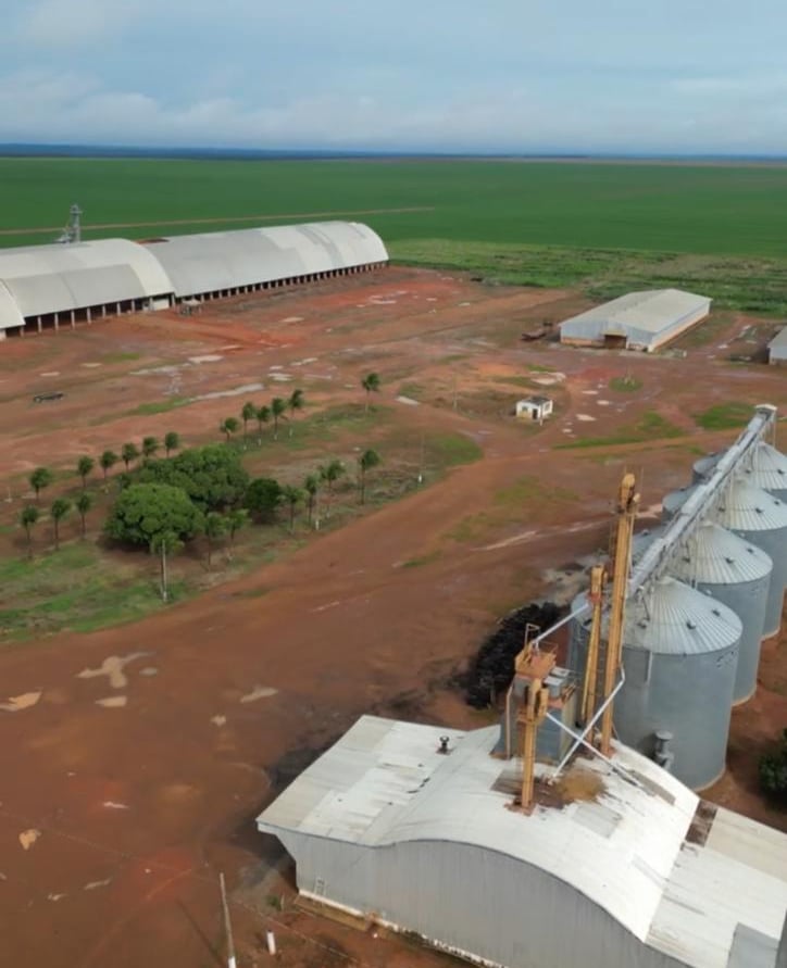 1- unidade de armazém, secador capacidade de secagem 60 toneladas horas, capacidade de armazenamento 120 mil sacas de soja